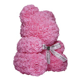 The perfect gift that will look great as a decoration piece in your loved one's home or office. Made with synthetic roses in a romantic pink color, this handmade Rose Bear lasts a lifetime with no care needed!