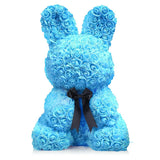 Give someone special a gift made of roses lasting forever 🌹 A gorgeous decorative bunny made of soft synthetic roses in a beautiful blue color. The perfect gift that will be something they've never seen before! Made with faux roses, these custom-made bears last a lifetime with no care needed!